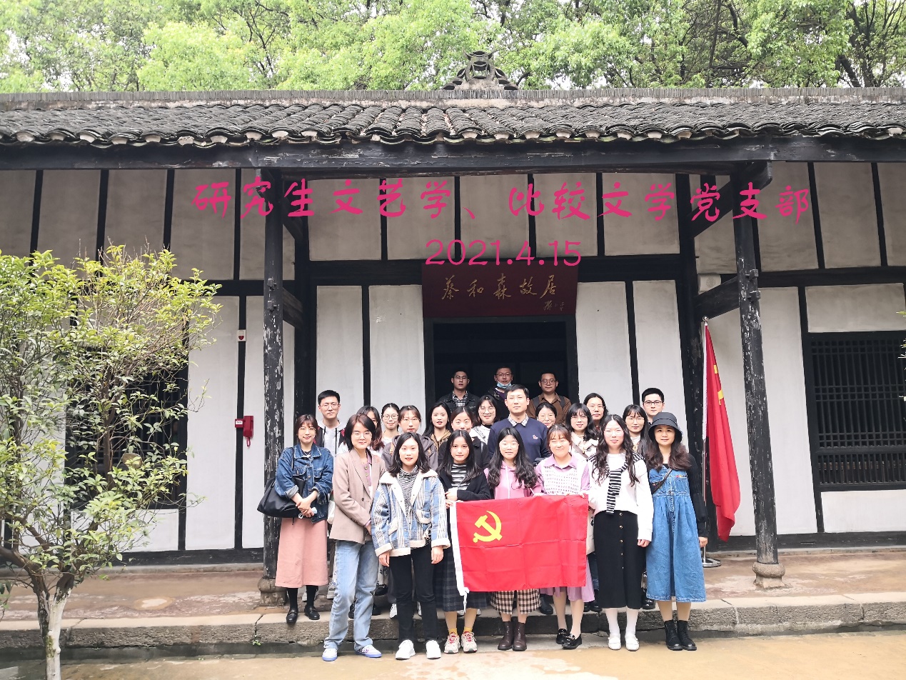 2021年4月15日,伟德国际victor1946研究生文艺学、比较文学党支部召开预备党员接收大会后,开展了党史学习教育实践活动,支部书记牟方磊老师和支部副书记邓春霞同学带领支部党员以步行的方式前往新民学会成立会旧址暨蔡和森故居参观学习。
