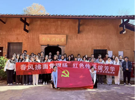 伟德国际victor1946师生党员在寻淮洲故居前开展红色主题活动并合影留念