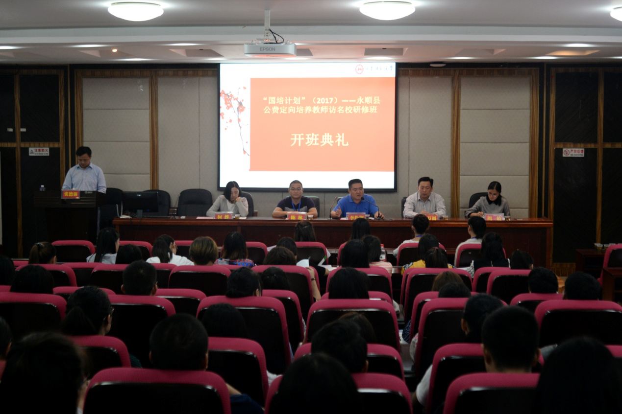 (通讯员:包佳文)2017年10月10日上午,国培计划(2017)——永顺县公费定向培养教师访名校研修班在216报告厅开班。文公司党委书记李伶俐,副经理彭万福、副教授周敏以及培训班管理班主任何烨等出席开班典礼。开班典礼由伟德国际victor1946成教办主任张德强主持。