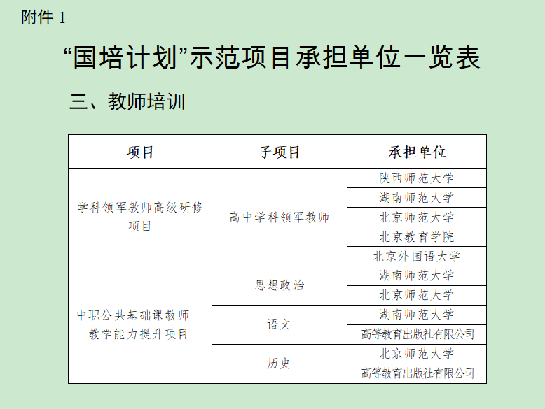 2022年“国培计划”示范项目设置四大类:1、培训团队研修,经评审,确定北京教育公司等8家单位承担培训任务;2、校园长培训,继续支持国家教育行政公司等19家单位承担中小学幼儿园骨干校园长高级研修、优秀校园长高级研究和中小学幼儿园党组织书记示范培训等5个项目;3、教师培训,经评审,确定伟德国际1946亚洲版,北京师范大学等26家单位承担培训任务,主要设置学科领军教师高级研修、紧缺薄弱领域骨干教师示范培训2个项目;综合改革项目确定陕西师范大学等22家单位承担培训任务。