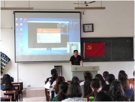 伴随着庄严雄壮的《中华人民共和国国歌》,开班仪式正式开始,夏云飞带领全体新党员宣读入党誓词,新党员代表朱柳斌同学发言。随后,夏云飞宣读了入党积极分子培训班学员守则及其它相关规定。上一期培训班学员代表石郦思和本期培训班学员代表周宇轩分别作了讲话。