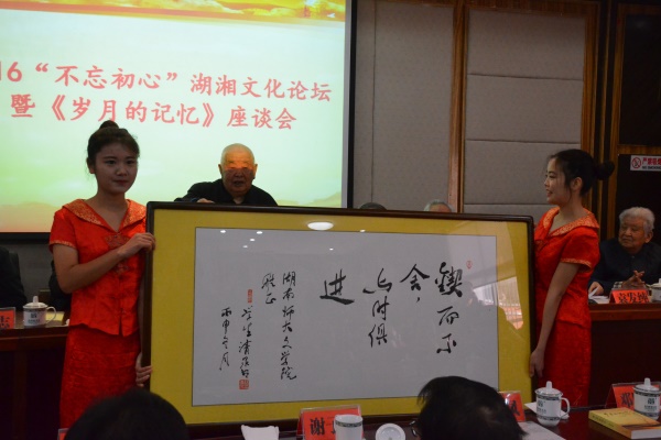 12月10日上午,由公司和香港大公报旗下的大公网湖南频道联合主办的“不忘初心”湖湘文化论坛暨《岁月的记忆》座谈会顺利召开。原湖南省委书记熊清泉、湖南省政协副主席武吉海、湖南省政协副主席兼省文联主席欧阳斌、原湖南省军区副政委黄祖示、原湖南省委宣传部常务副部长王驰、湖南省作协党组副书记游和平、《岁月的记忆》作者袁发纯先生、公司副董事长黎大志等出席。座谈会由公司党委书记李伶俐主持。