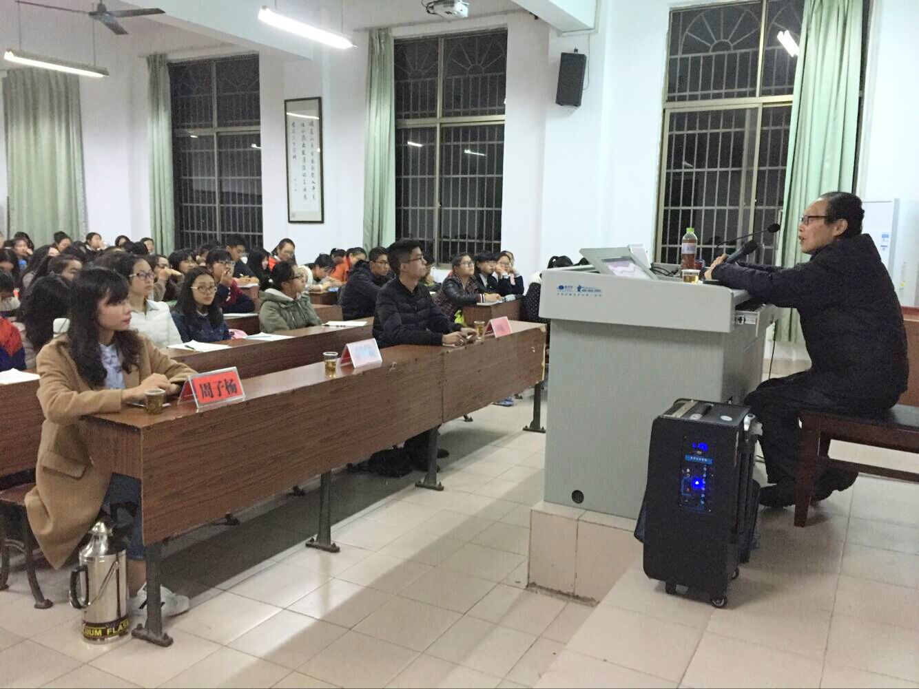 陈蒲清教授围绕“心无旁鹜,求知问学”主题,从“求知读书应先博后约”、“科研要敢于怀疑,勇于改错”、“做人要胸怀大局,保持人格”等三个方面,向同学们解答学习、科研、做人的思想、理念和方法。