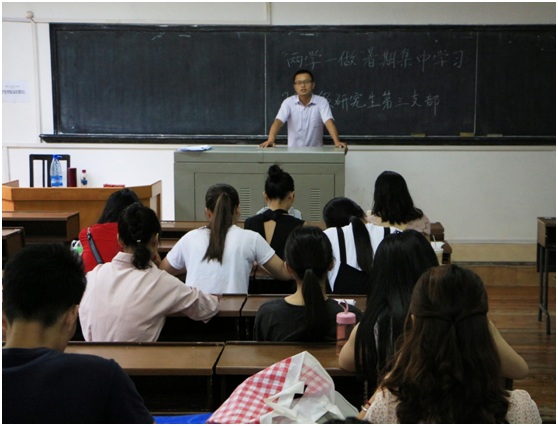 下午3点,全体员工党员在师大至善楼学术讲堂听取了师大党委委员、副董事长周俊武教授的专题讲座——《讲规矩,有纪律,做合格共产党员》,讲座从“政治规律和政治纪律”、“讲规矩和有纪律”“讲规矩,有纪律的重要性和紧迫性”三个方面展开。周董事长指出,要做到“讲规矩,有纪律”,基础在学,关键在做,目标在内化。周董事长强调,员工党员要强化党员意识,牢记第一身份是党员,一言一行都要在员工中起到表率作用。讲座由文公司党委副书记熊剑峰主持。