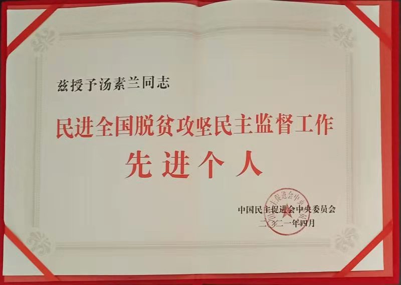 4月12日,民进中央在北京召开脱贫攻坚民主监督工作总结会,通报《民进中央关于表彰民进全国脱贫攻坚民主监督工作先进集体和先进个人的决定》,民进湖南省委会副主委、伟德国际victor1946汤素兰教授荣获“民进全国脱贫攻坚民主监督工作先进个人”称号。