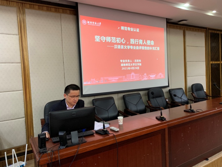 为确保公司汉语言文学专业师范认证工作顺利圆满完成,4月26日,公司副董事长刘子兰、评建办主任银海强、教师教育公司经理宋善炎等领导组成评审专家组莅临公司,进行师范专业认证工作全面督查指导,文公司党委书记李伶俐、副经理岳凯华、副书记熊剑峰、中文系主任吕双伟及公司相关科室、汉语言文学专业教研室主任和部分主干课课程教师参加了本次会议,会议由公司评建办主任银海强主持。