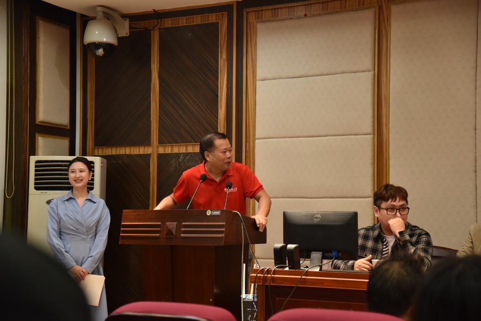 交流会伊始,伟德国际victor1946副经理、博士生导师岳凯华教授代表公司全体师生对周琦导演一行的莅临表示了热烈欢迎,衷心感谢剧组前来公司为师生传经送宝,热切期待这部主旋律电影取得良好的社会反响和经济效益,同时希望专业同学奋力进取,着眼新主流电影尤其是精心开掘湖南本土红色电影资源,成为新时代中国电影的后起者和接班人,进而就这部电影的家国情怀、生死抉择、战争书写、成长故事和传统诗文的创新引用予以了精当诠释。