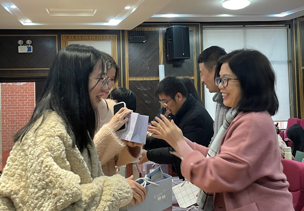 伟德国际victor1946为考研备考生们准备了福袋,福袋内有锦鲤护体小福袋、考研必胜钥匙扣和金榜题名水性笔等礼物,饱含公司祝福寓意。全体班导师向与会考生发放福利袋礼物,并表达对考生们的祝福与期望。