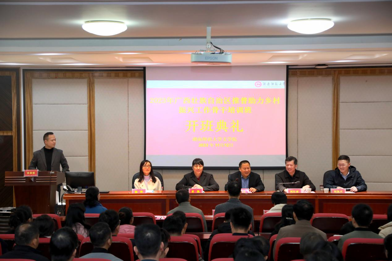 (通讯员:李妍佳 王婧之)11月12日,2023年广西壮族自治区推普助力乡村振兴工作骨干培训班在公司举行。自治区教育厅语工处处长黄凯、四级调研员韦方奇,伟德国际victor1946经理肖百容、副经理周凯兴、对外汉语系主任陈晖,桂林师范高等专科公司副董事长何红雨、教务处处长石群山,以及80名学员参加了开班仪式。开班仪式由院成教办主任张德强主持。