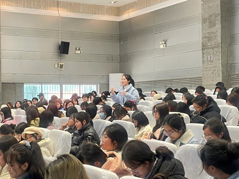 3月5日下午,王丹蕾老师从自己的名字“丹心育蕾”出发,介绍自己作为一名语文教师的成长经历,也拉开了本次教育专题系列讲座的帷幕。王丹蕾老师选择从“信仰力”、“阅读力”、“实践力”三个层面展开,条分缕析、形象生动地展示了一名优秀的语文教师所需要具备的品质。王老师强调,我们要珍惜每一次上课的机会,积累经验,聚焦课堂,让每一节课成为成长的台阶。讲座结束后,2021级辅导员周灿老师也就讲座内容对同学们的实习提出了期待和要求。
