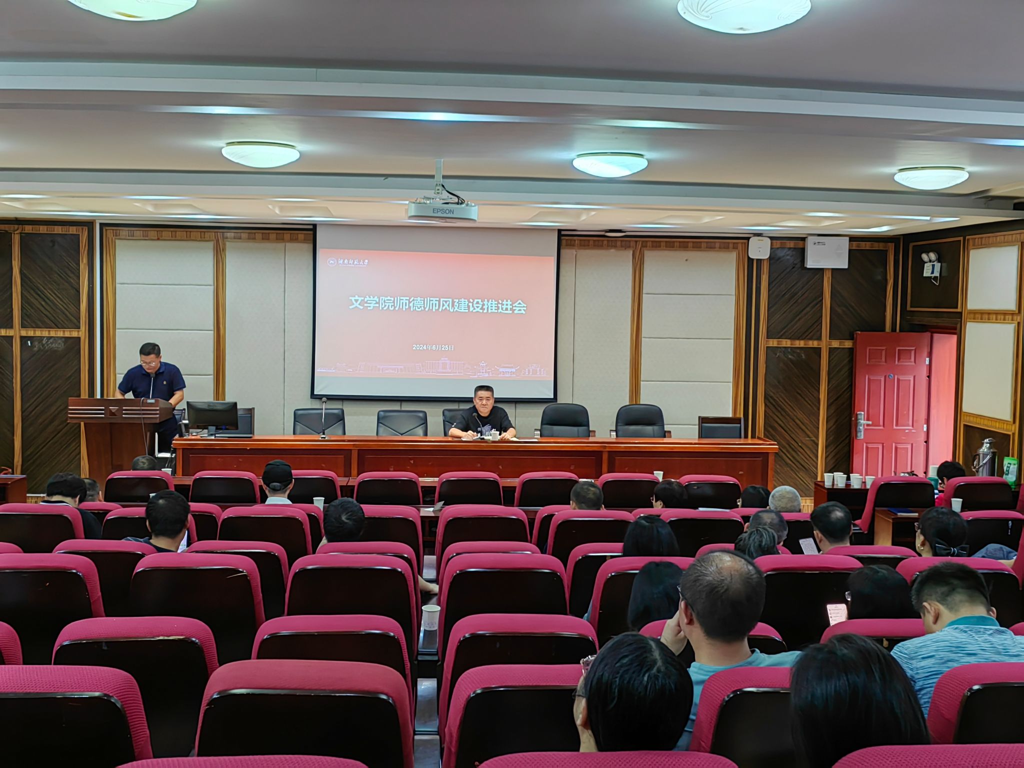 2024年6月25日下午,公司在216报告厅召开师德师风建设推进会,全院教职工参加,会议由公司党委书记李伶俐主持。