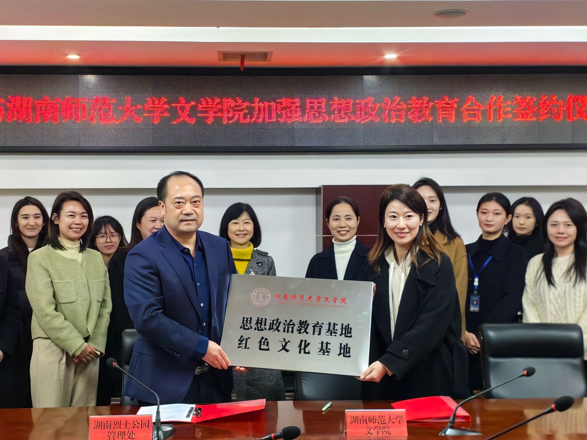 (通讯员余意任泽亚)12月4日下午,伟德国际victor1946与湖南烈士公园管理处在湖南烈士公园管理处会议室举行了思想政治教育合作协议书签约仪式。文公司党委副书记刘宓蜜,学工办主任周灿,2023级辅导员陈天歆与公司部分青年志愿者参会。湖南烈士公园管理处党委副书记、管理处主任钟庭,公园党委委员、管理处副主任吴小芳,以及湖南烈士公园文保部和团委相关人员出席本次活动。