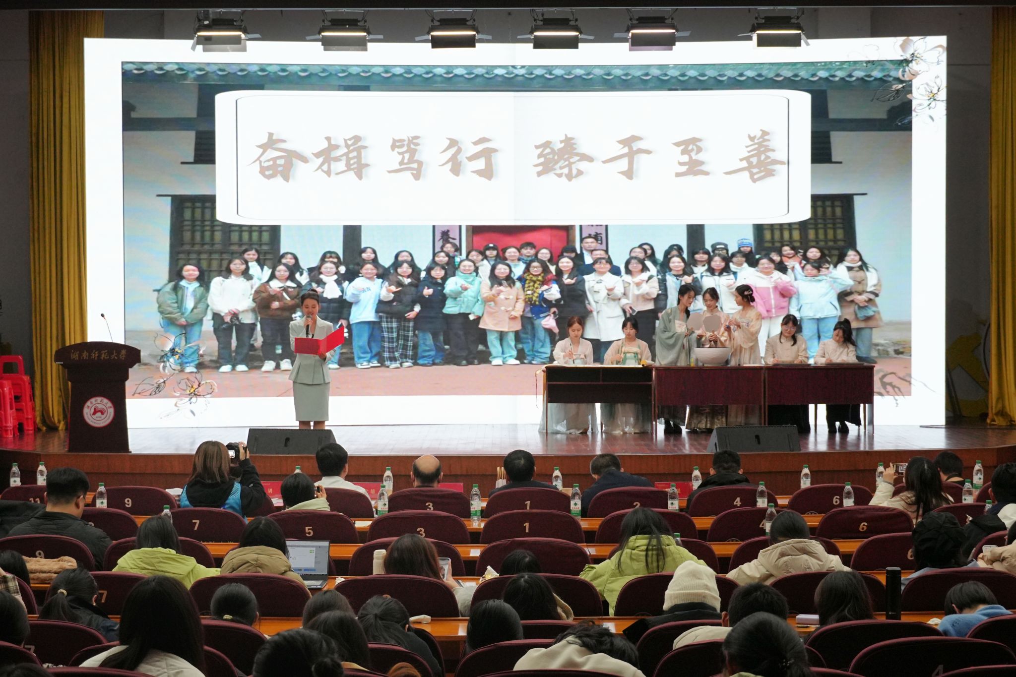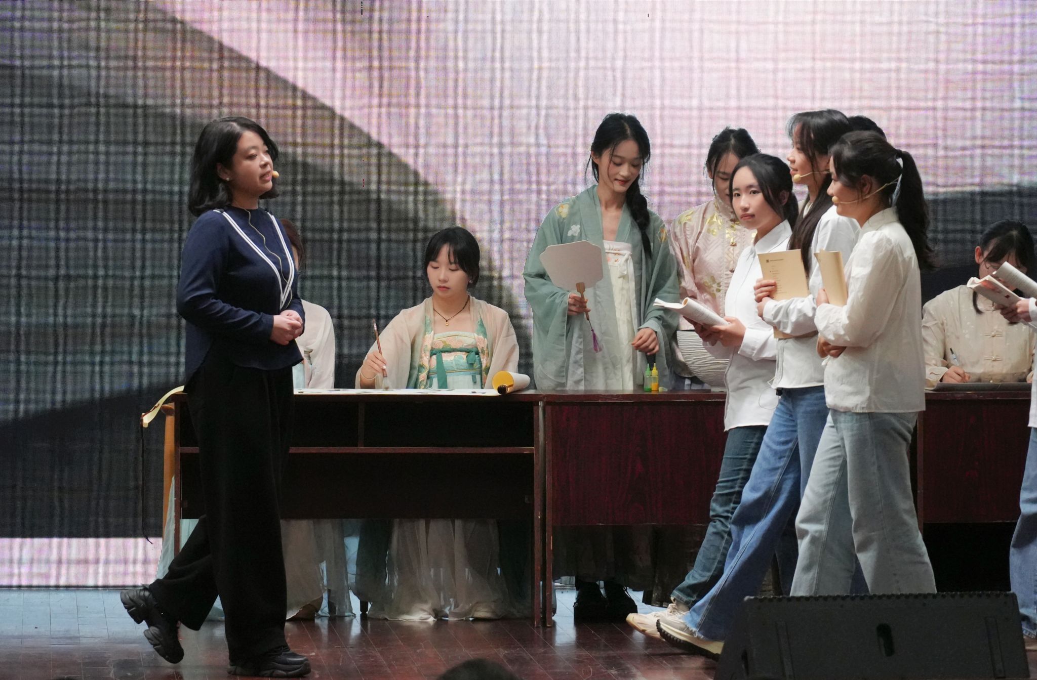 风采展环节由张家界所饰演的陶行知先生的吟诵开场,与员工共论“知行合一”教育理念,共盼百年后华夏教育伟业,向观众展现了上世纪学子谈论教育发展的场景。陈展带领新时代学子共赏橘子洲头,将《沁园春》与橘子洲相结合,阐明了陶行知先生“行是知之始,知是行之成“的教育理论。同时,6班学子身着汉服,完美展示舞剑、泼墨、制扇等中华优秀传统文化。风采展最后,刘宓蜜与彭君对6班三年来汲汲求学、献身教育的行为表达赞扬及期盼,6班学子及文院同学共同呐喊班号,气势磅礴。