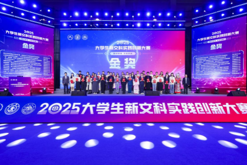 (通讯员潘梦)11月28日至30日,2025年老员工新文科实践创新大赛决赛在陕西西安举行。由丛杨、刘宓蜜老师指导,潘梦、龙心怡等同学创作的项目《“数智非遗经济人”——基于数字创意的非遗朋克IP活态传承计划》获国赛金奖。
