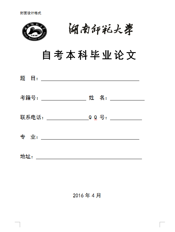 (1)封面设计(格式附后):封面必须用白色纸胶装。