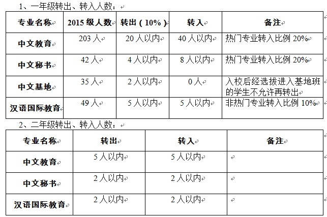 1、一年级转入、转出员工高考主要科目语文、数学、英语成绩至少一门须达到相应要求(语文或数学分及以上,英语分及以上,以分制换算)。上述证明材料需要员工自己提供,凡提供虚假证明材料者取消资格、后果自负。2、二年级转入、转出员工要求在校学习期间品行表现良好,文化课程总平均成绩按专业排名位居前35%,但转入员工名额将严格控制。转出员工上述证明材料由本院开具,转入员工需要所在院系提供,提供虚假证明材料者取消资格、后果自负。