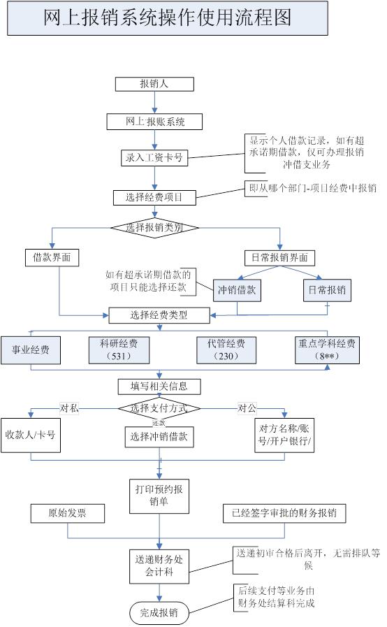 附:网上报销系统操作使用流程图(详细操作见使用手册)