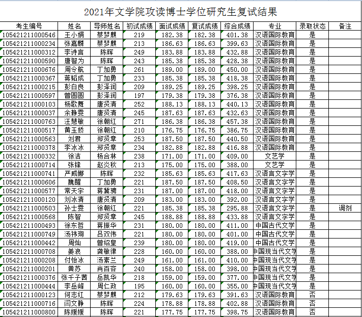 2021年伟德国际victor1946攻读博士学位研究生复试结果