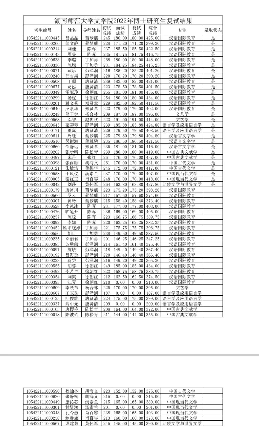 2022年博士招生复试名单