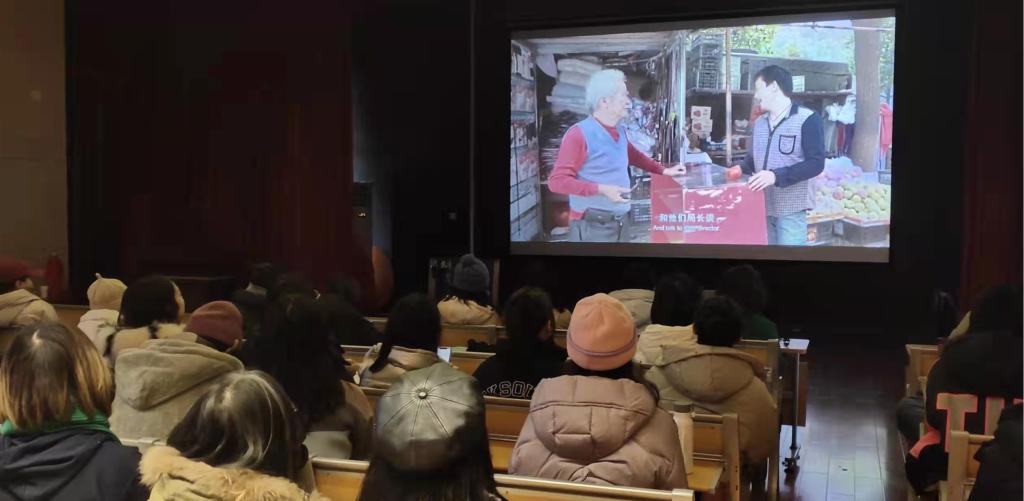 在映后交流环节,傅异星老师就“人物”,黄茵老师就《城市梦》的“点”与“面”进行了相关讨论。同学们也对影片的观后感以及部分问题和于晓川老师展开交流、咨询。于晓川老师对此一一做出解答,在员工和老师中引起了一阵阵热烈的掌声。