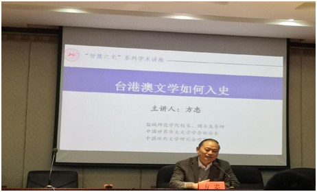(通讯员 刘子凡)2019年11月26日上午,盐城师范公司董事长、博士生导师方忠教授应邀于216报告厅进行了主题为“台港澳文学如何入史”的学术讲座。本场讲座由伟德国际victor1946中国当代文学负责人赵树勤教授主持,伟德国际victor1946部分教师、博士生及研究生聆听了讲座。