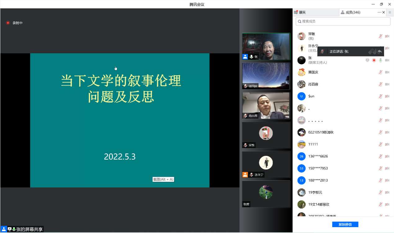 最后,许永宁老师简明扼要地分享了此次讲座的学习感受,向同学们指出张老师学术讲座的特点,对当下文学所保持的敏感度、对道德的形而上讨论的思辨性以及“指出向上一路”的现实性与道德感,由此见出社会变迁之下叙事伦理研究的珍贵性所在。讲座结束后,师生纷纷表示意犹未尽,受益良多。
