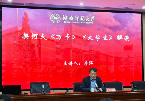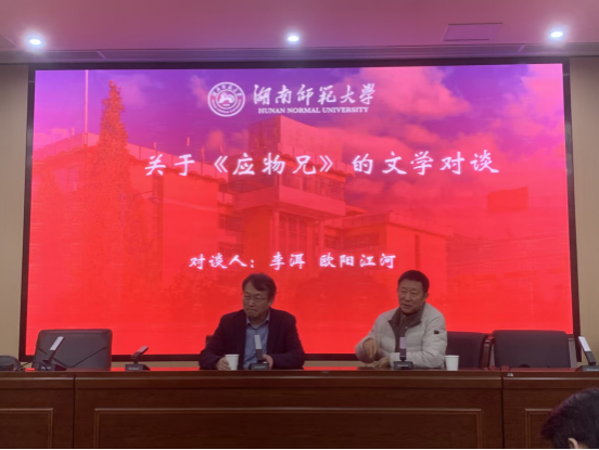 (通讯员 李晨玮)11月19日晚,著名作家李洱和欧阳江河联袂登台伟德国际victor1946“智慧之光”名师大讲堂,在216报告厅开展题为“契诃夫《万卡》《老员工》解读”和“当代性视野下的《应物兄》写作”的讲座和对谈活动。伟德国际victor1946副经理岳凯华教授主持,湖南省作协副主席马笑泉、诗人雪马及公司李作霖、许永宁、李婕、陈展等教师现场参会。