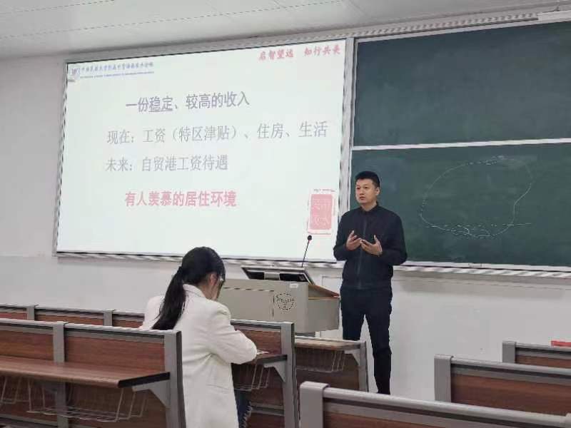 招聘宣讲会以播放陵水分校宣传片拉开帷幕,其生动展示了陵水分校公司发展历史、分校概况、教师队伍、培养特色、办学成绩、德育建设、领导关怀等多方面内容,让同学们直观感受到公司的内涵与精神。